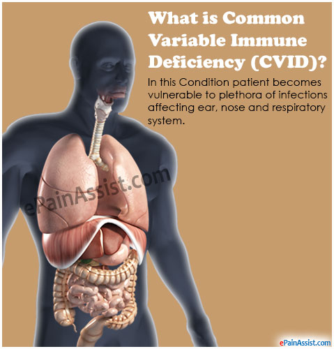 Jednotlivci, kteří trpí běžný variabilní imunodeficience (CVID) jsou náchylné k infekcím z důvodu nedostatku protilátek v krevním řečišti. Jako protilátky chybí, vakcíny nebude mít žádný vliv na šíření infekce. Jednotlivci často trpí infekcí dýchacích cest, která by mohla přerůst v akutní onemocnění plic, dutiny a uší. To může nakonec ukázat jako fatální pro pacienty.
