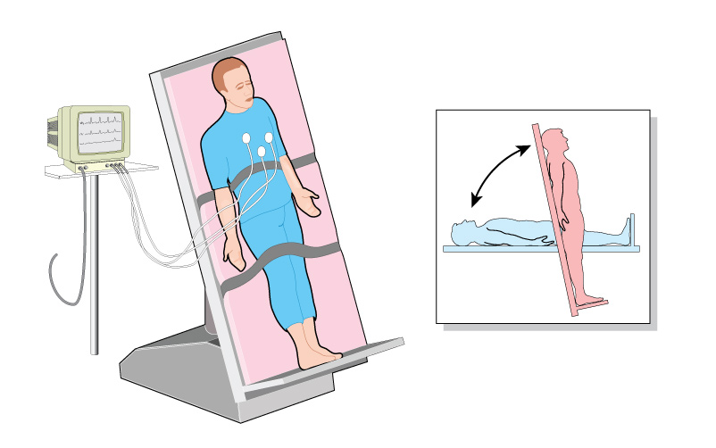 Test na vertikalizačním stole (TTT) se používá pro diagnostiku příčin opakovaných ztrát vědomí, takzvaných synkop. Jeho cílem je nasimulovat stav, který u pacienta vyvolá mdloby, a následně díky pečlivému monitorování krevního tlaku, srdeční frekvence a EKG křivky odhalit, proč k opakovaným ztrátám vědomí u pacienta dochází. Na rozdíl od aktivního postoje při TTT pacient neužívá svalovou pumpu svalů dolních končetin, jednoho z mechanizmů žilního návratu. To vede k větší zátěži regulace prostřednictvím ANS než aktivní stoj. Specificita vyšetření je 90 % (s farmakologickou intervencí je menší).